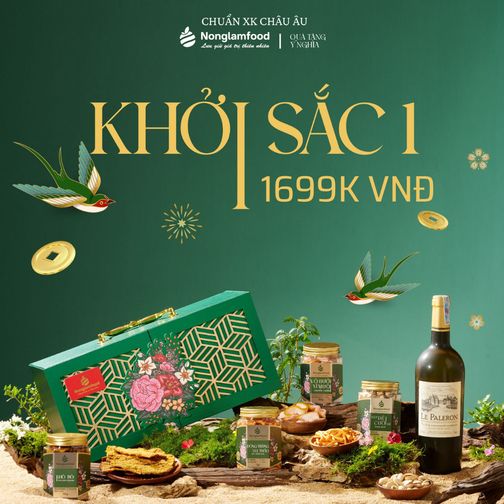 Hộp quà Tết Khởi Sắc 01 với thiết kế bên ngoài sang trọng, quý phái là phiên bản giới hạn năm nay của Nonglamfood.