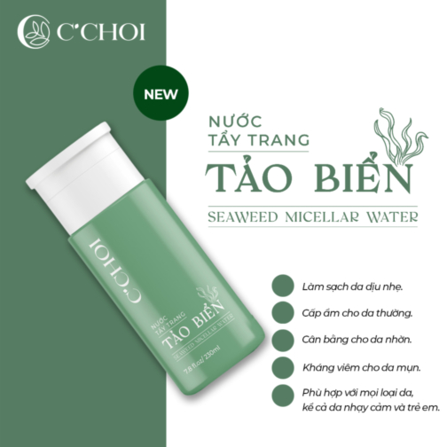 Nước Tẩy Trang Tảo Biển - Seaweed Micellar Water là bước đầu tiên thuộc bộ sản phẩm làm sạch của Mỹ phẩm xanh C'Choi, được khuyên dùng kèm với Sữa Rửa Mặt Bọt Khoáng.